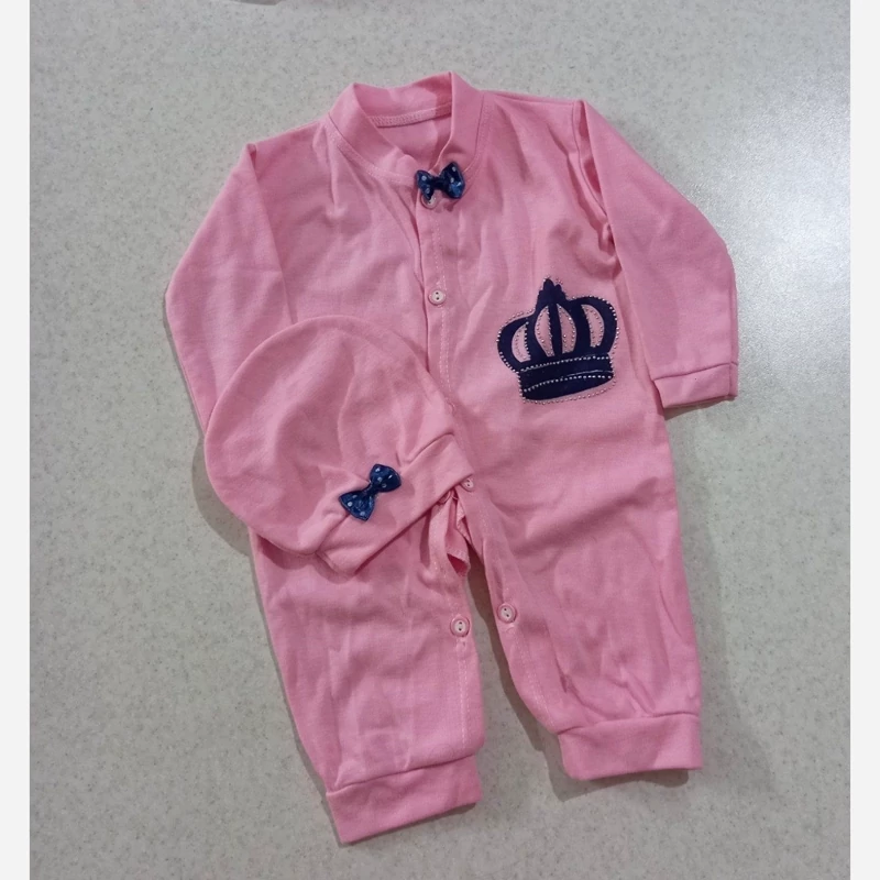 سرهمی نوزادی صورتی دخترانه با کلاه