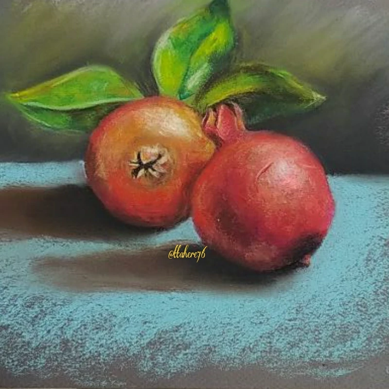 نقاشی پاستل مدل انار سایز A4 مناسب شب یلدا، دکوری، منزل، آشپزخانه و... بدون قاب