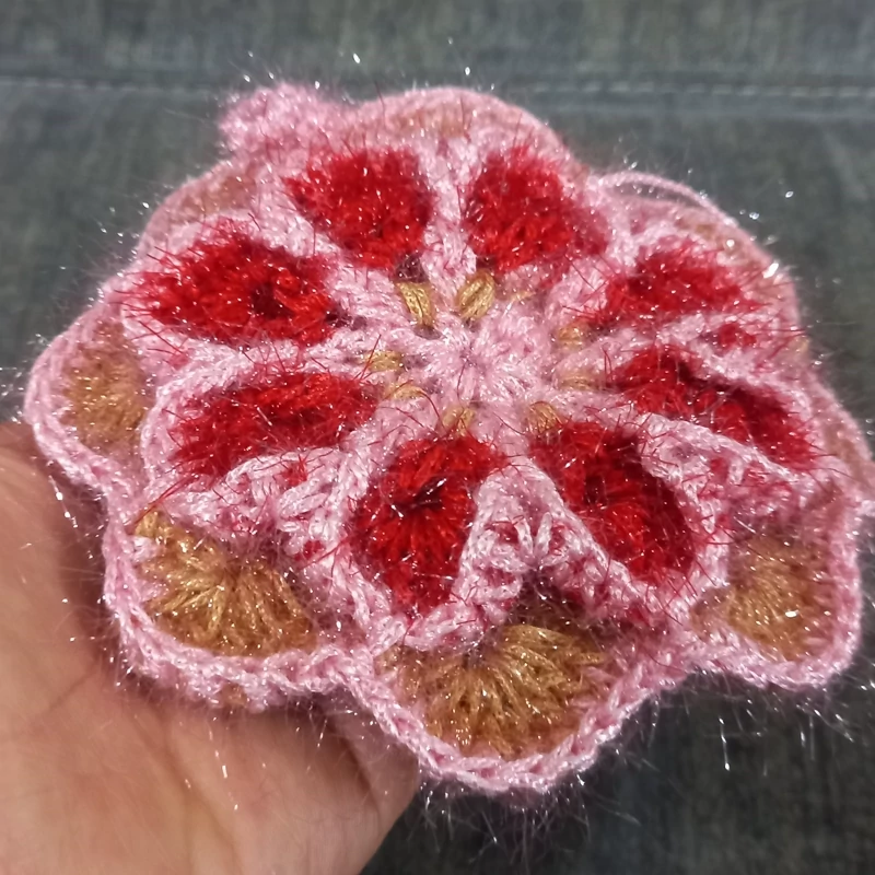 اسکاج بافتنی طرح گل دو لایه با نخ سوزنی در رنگ قرمز صورتی و رنگهای مختلف