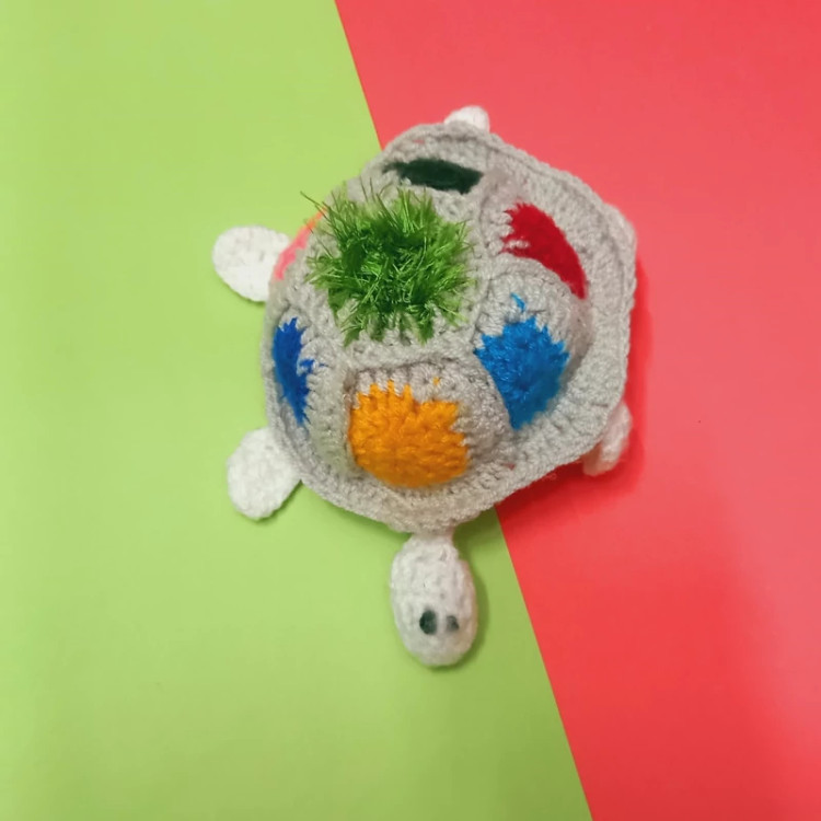 عروسک بافتنی لاک پشت رنگ طوسی سایز بزرگ