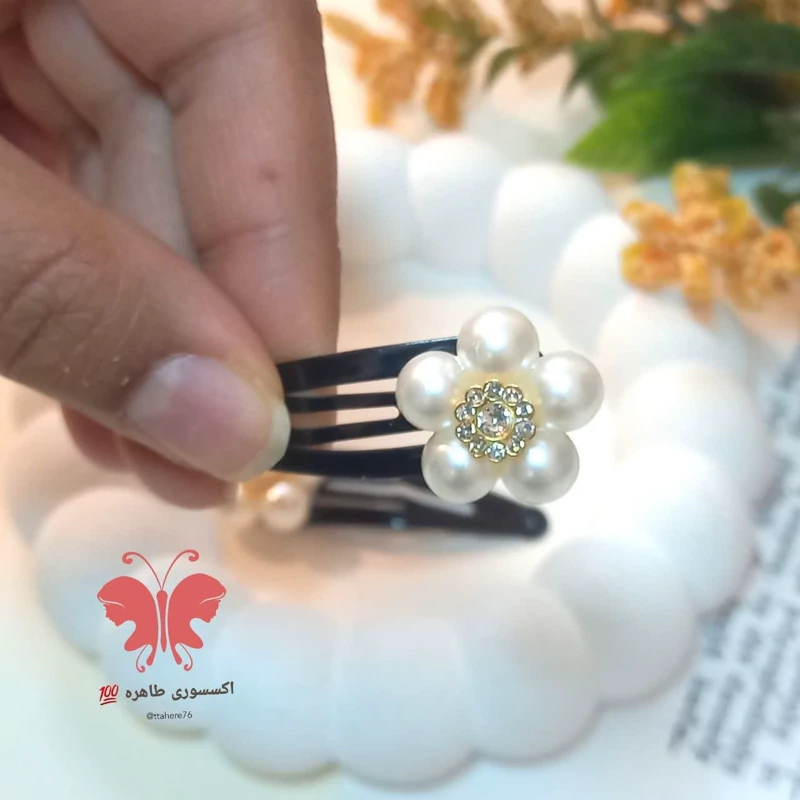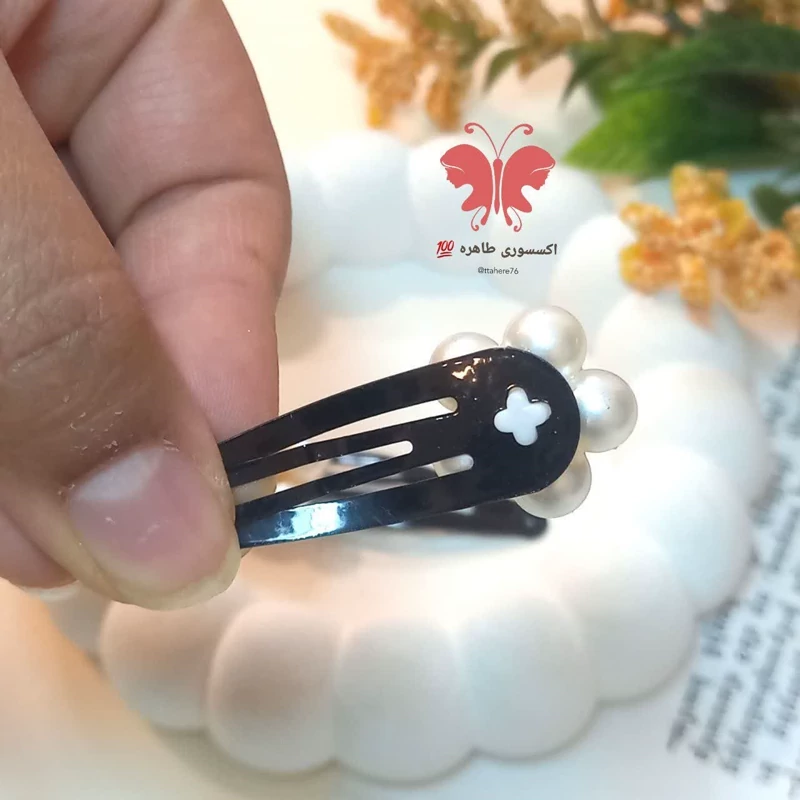 گیره سر تق تقی گل مرواریدی مشکی جفتی