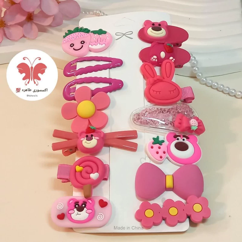 دارای گیره های انبری و تق تقی با شکل های متنوع 😍👌 رنگ کرم قهوه ای/صورتی/بنفش/سرخابی قیمت برای یه پک است. اگه عمده میخوای بیا تو گفتگو 🗣️ رنگ و مدل خاصی مدنظرتون هست حتما تو گفتگو اعلام کنید و موجودی بگیرید در غیر این صورت رندوم ارسال میشه 🌺 در تعداد بالا رندوم ارسال میشه