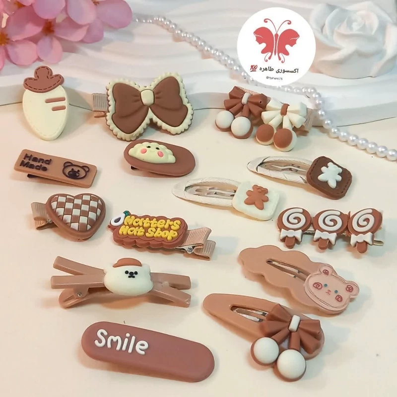 دارای گیره های انبری و تق تقی با شکل های متنوع 😍👌 رنگ کرم قهوه ای/صورتی/بنفش/سرخابی قیمت برای یه پک است. اگه عمده میخوای بیا تو گفتگو 🗣️ رنگ و مدل خاصی مدنظرتون هست حتما تو گفتگو اعلام کنید و موجودی بگیرید در غیر این صورت رندوم ارسال میشه 🌺 در تعداد بالا رندوم ارسال میشه