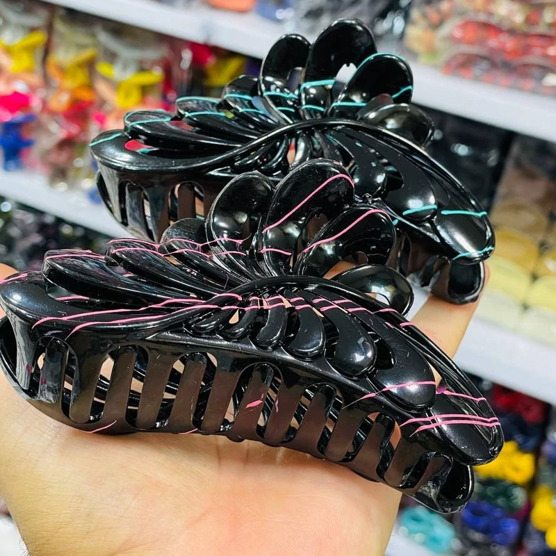 کلیپس مو گلبرگ براق و شیشه ای سایز بزرگ 13 سانتی