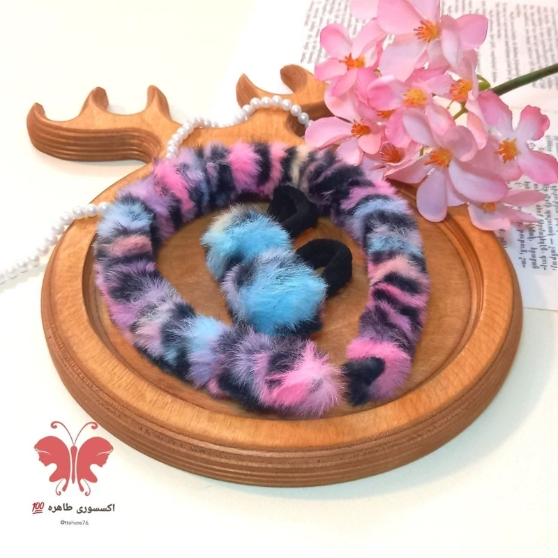 ست تل ریلی و کش مو خز ریلی هفت رنگ پاستیلی